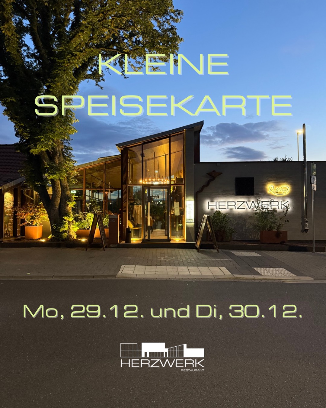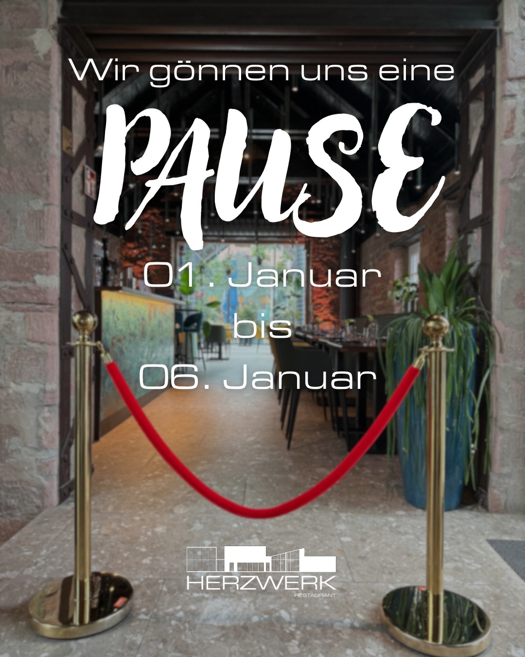 Das HERZWERK Restaurant macht vom 01.01.2026 bis 06.01.2026 eine kurze Pause und ist ab dem 07.01. wieder für Sie da.